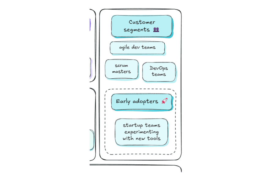 - Differentiate early adopters: While important, early adopters usually aren't representative of your general audience. Create a subsection dedicated to them in the Customer Segments box to keep that distinction clear.