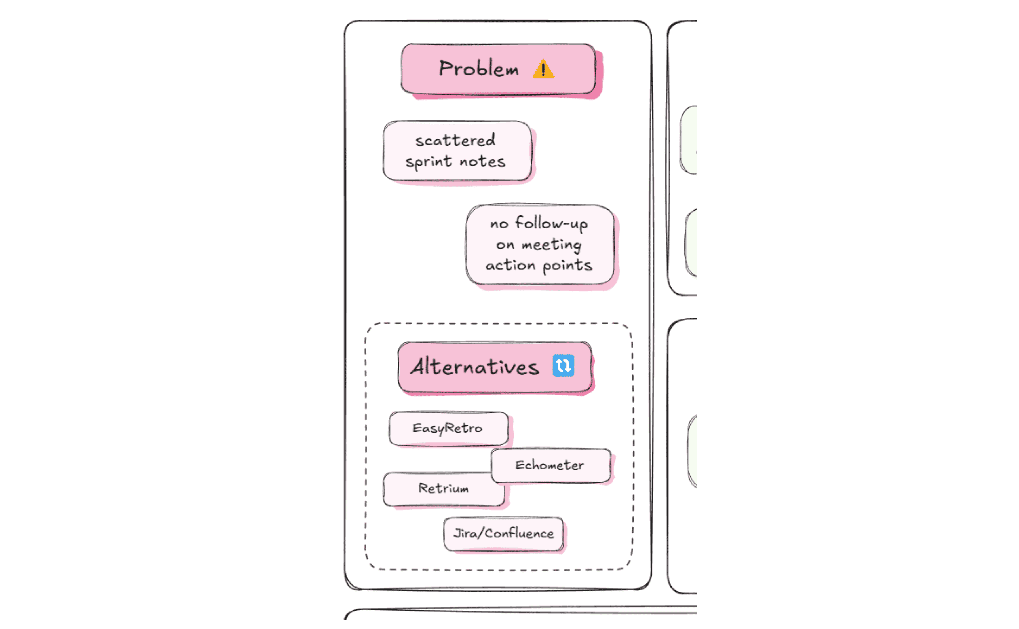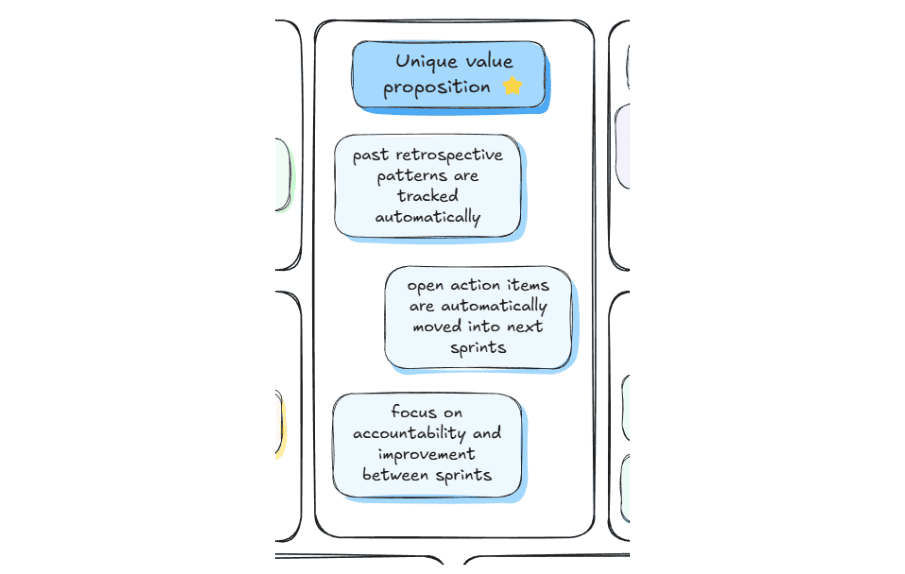Imagine you're building an app for capturing and managing sprint retrospectives. The product is still in its early days, and you're looking for ways to understand your customers and refine your concept.What would a Lean Canvas for this product look like, and what should it include?