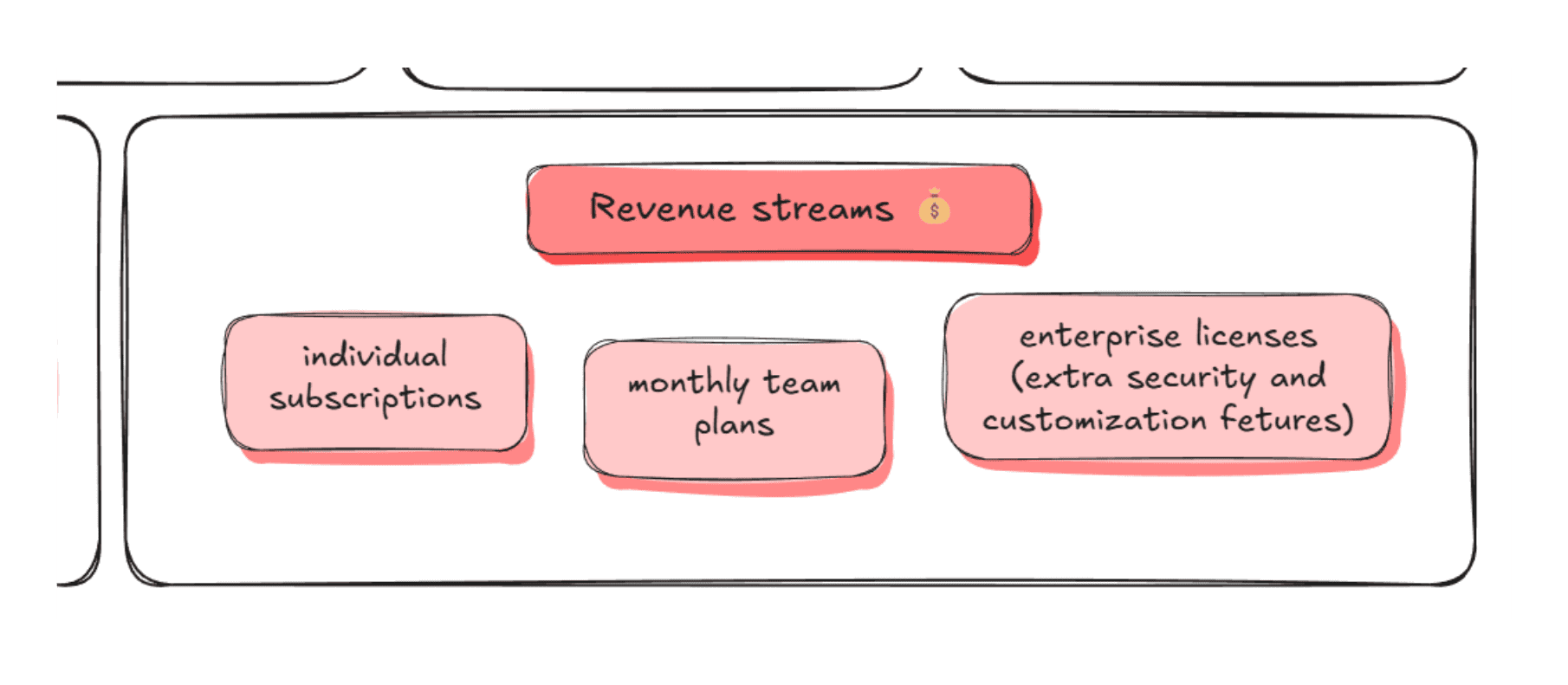 Similar to cost structure, consider different sources of revenue: one-time payments, subscriptions, usage-based pricing, in-app ads, sponsorships, and more.