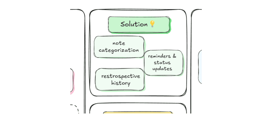 This box outlines answers to the challenges identified in the Problem box. Think of it as your MVP: a simple, fast-to-build set of features that solves core user problems and that you can easily iterate on.