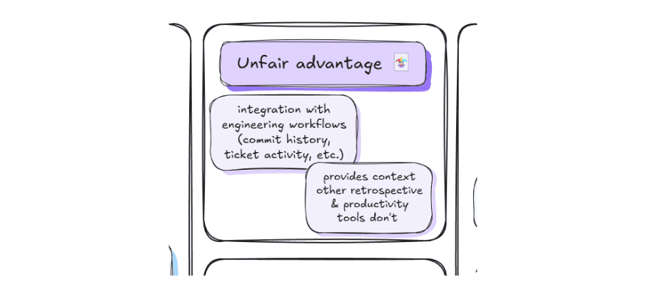 Your unfair advantage is something competitors can’t copy or buy, like proprietary data, a patented technology, or a strong community. It's a differentiator that will give you an edge over competitors in the long run.